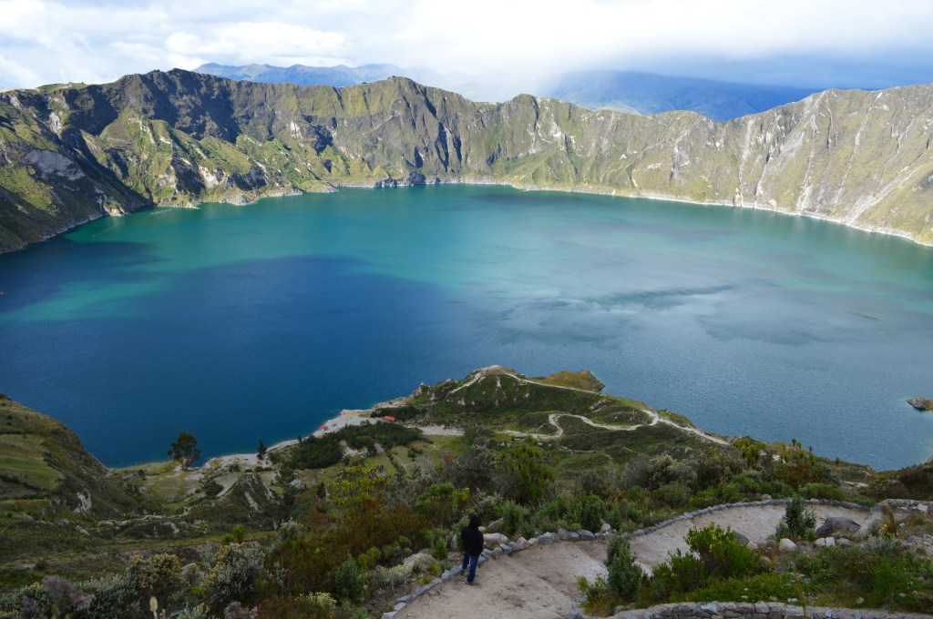 Quilotoa es un volcán situado a casi cuatro mil metros, su forma de caldera se debe a una pasada erupción y en las laderas de la misma se pueden encontrar manantiales calientes. Nos quedamos en un hostel por 15$ la noche, con una habitación y cama enormes, además de cena y desayuno incluidos.